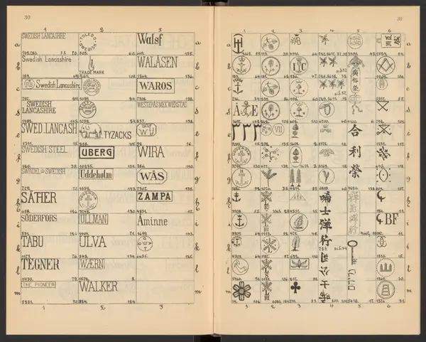 Svenska järnstämplar 1907. Tryckt. Ur Carl Sahlins bergshistoriska samling.