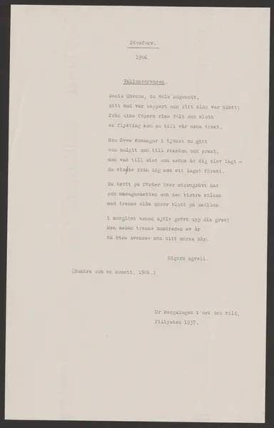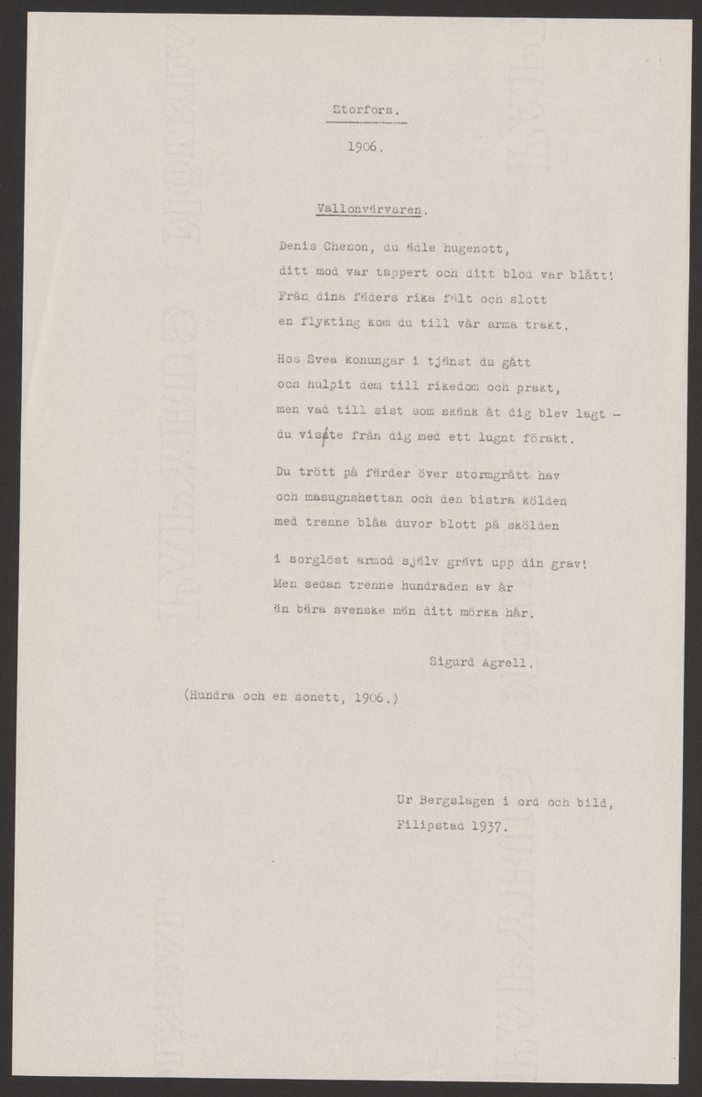 Storfors bruks kronologi.Storforsverken.Ur Carl Sahlins bergshistoriska samling.