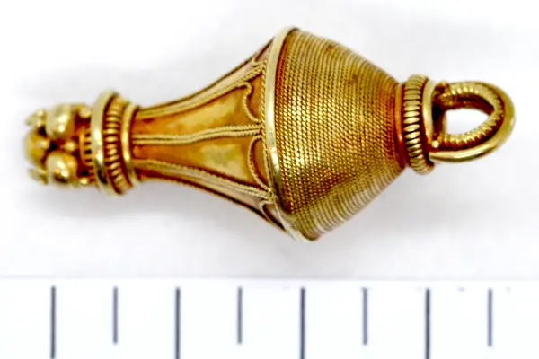 Inom den undersökta ytan, 500 m2, framkom 5 runda stensättningar, 1 triangulär stensättning, två stenkistor (varav en skadad), och två av svackor markerade kistor. Dessutom påträ...