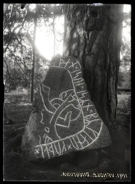 Runsten på gårdsplanen till Vendle gård Dingtuna socken.Fornlämning RAÄ 278:1