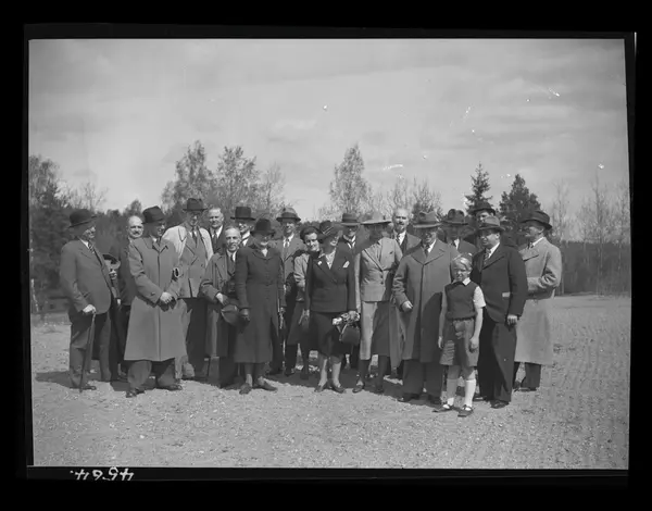 Sveriges fornminnesförening på besök 1939. Vallby friluftsmuseum.