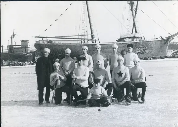 Västerås, Munkängen. Bandylaget VSK i Västerås hamn, 1906.