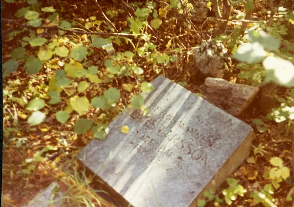 Strömsholm, Kolbäck sn. Gravsten vid kolerakyrkogården vid Strömsholms slott, med text: Bergsmannen Lars Larsson Söderbärke 1828-1866. Enligt dödboken död i kolera.