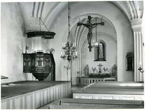 Interiör med predikstol m.m., 1983.
