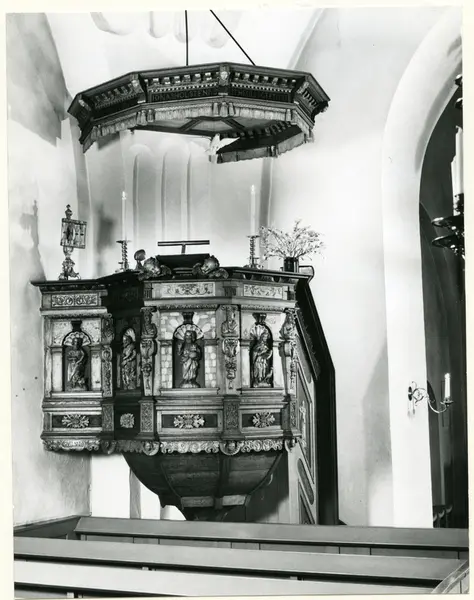 Badelunda sn, kyrkan.Predikstolen från 1655. 1983.