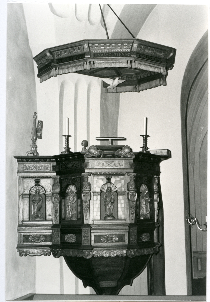 Badelunda sn, kyrkan. Predikstolen från 1655.