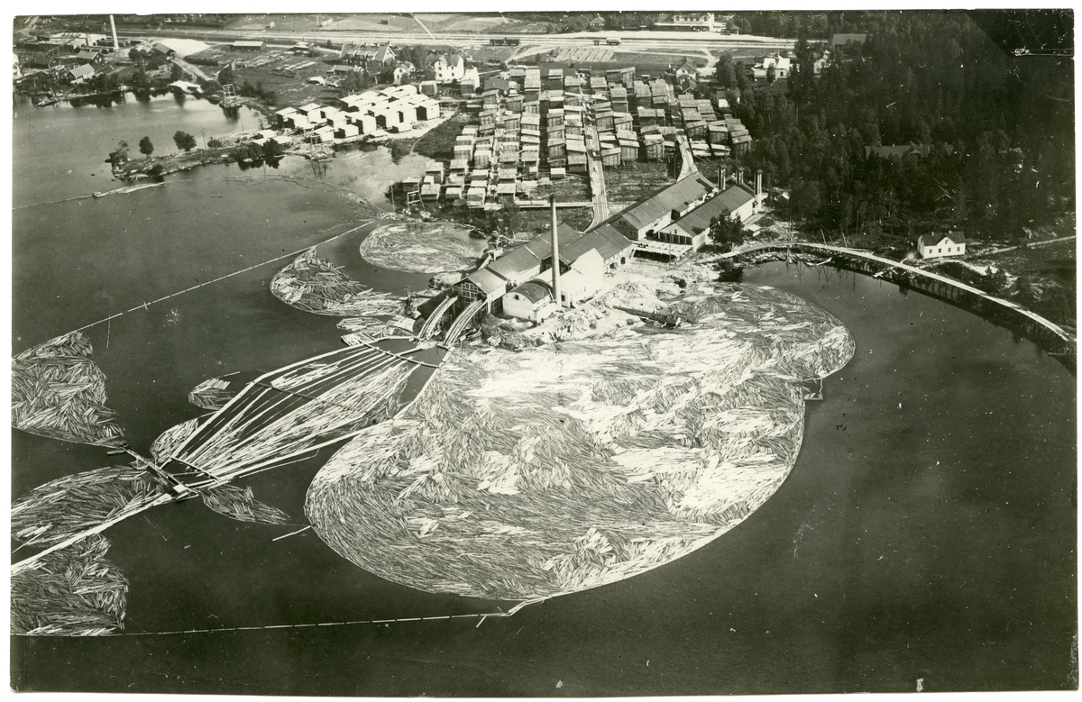 Skinnskatteberg sn, Skinnskattebergs kn, Skinnskattebergs samhälle.Flygfoto över sågverket, 1922.