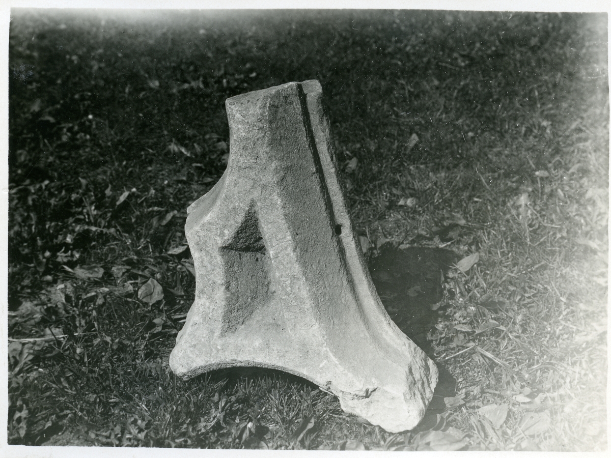 Ängsö sn, Västerås kn, Ängsö kyrka.Sandstensfragment, 1929.