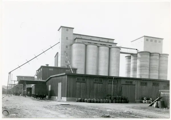 Västerås, Munkängen. Arosbygdens silos-magasin vid gamla hamnen, Västerås. 1950-talet.