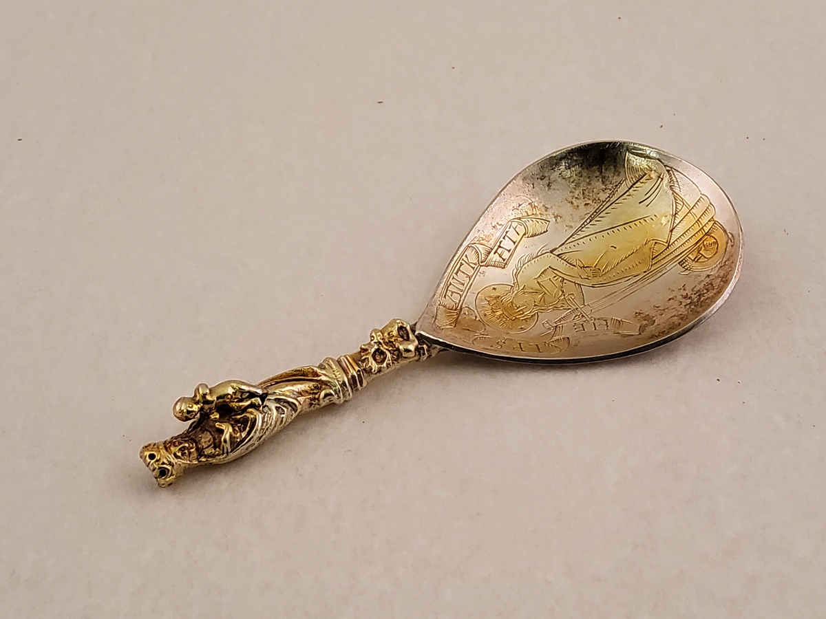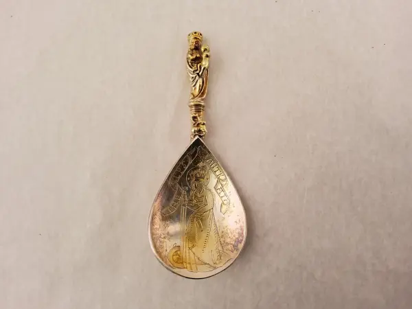 • Avgjutning av sked med inventarie nummer 1M16-1754, "Sked av silver graverad, med Sa Katarinas bild, funnen å den plats i Skara, där biblioteket nu står. Beskrivning finns i Fornminnes Föreningen tidskrift F:1:20."