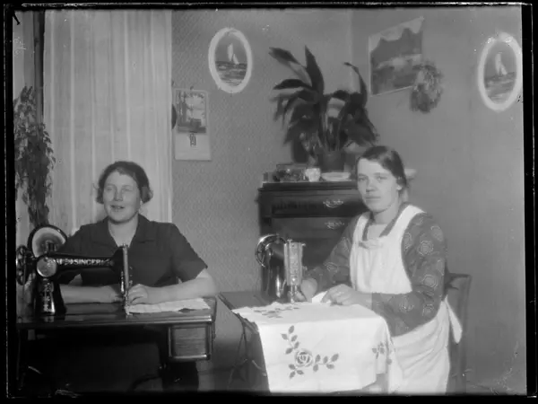 • Två kvinnor syr på maskin