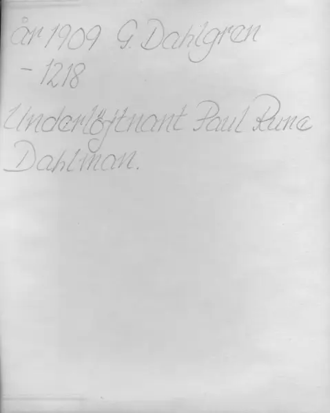 På kuvertet står följande information sammanställd vid museets första genomgång av materialet: Underlöjtnant Paul Rune Dahlman.