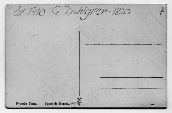 På kuvertet står följande information sammanställd vid museets första genomgång av materialet: Ryss som tvättar sig.
