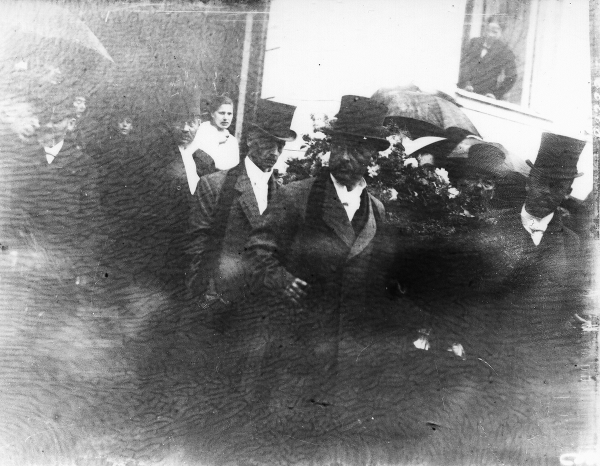 • Begravning, herrar med höga hattar.