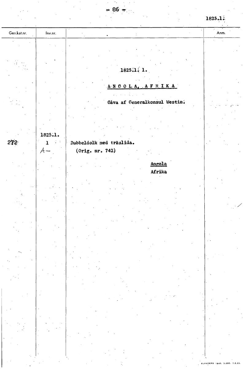 • 1825:1;. 1. A,NGOLA AFRIKA Gåva af Generalkonsul Westin; Dubbeldolk med träaida. (Orig. nr. 742) Angola. Afrika [ocr]