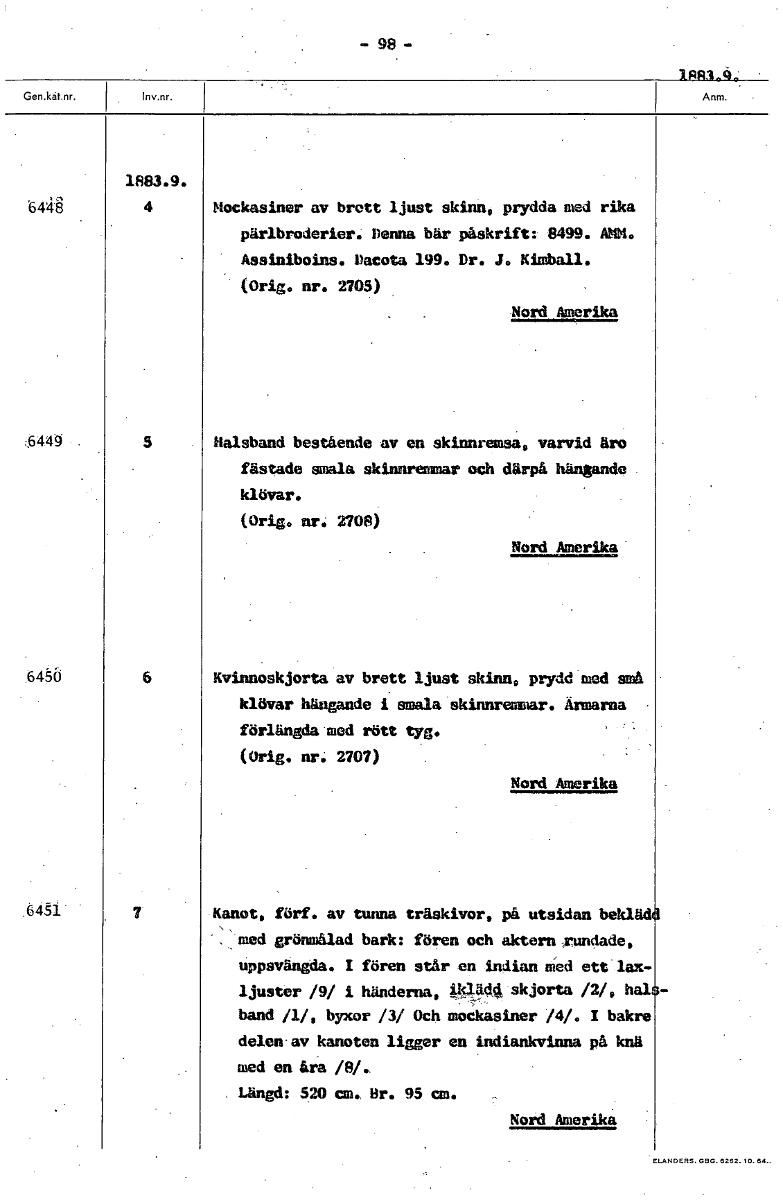 -98- 1883.9. 644å 4 Hockasiner av brett ljust skinn, prydda med rika pärlbroderier. Denna bär påskrift: 8499. Anno Assiniboins. Dacota 199. Dr. J. Urnhall. (Orig. nr. 2705) Nord Amerika ,,6445 5 Halsb...