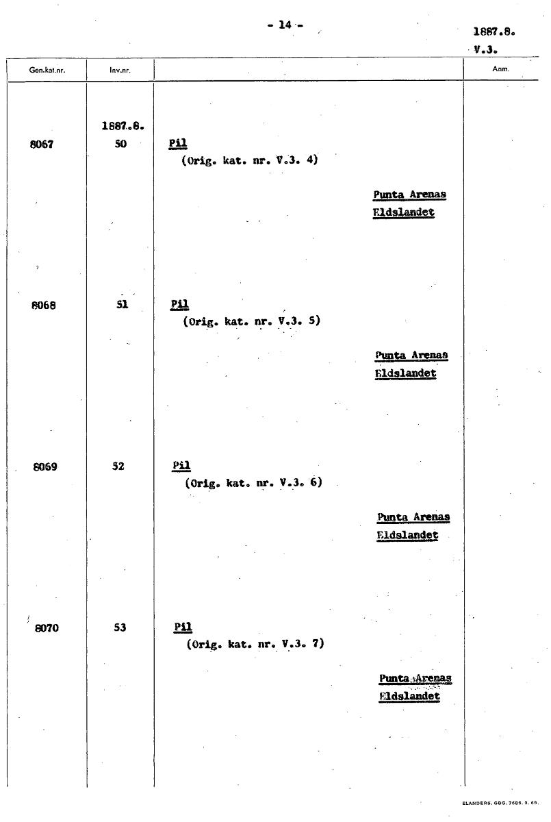 • - 14 - 1887.8. • V.3. 1887..8. 8067 50 Pil (Orig. kat. nr. V.3. 4) Punta Arenas F.ldslandet 8068 51 Pil (Orig. kat. nr. V.3. 5) Pynta Arenas Eldslandet' 8069 52 Pil (Orig. kat. nr. V.3. 6) Punta Arena... Visa hela