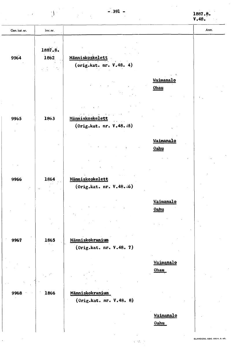 • 1887.8. V.48. Människoskelett (orig.kat. nr. V.48. 4) Waimanalo Människoskelett (Orig.kat. nr. V.48.4) Waimanalo Oahu Människoskelett (Orig.kat. nr. V.4 .44 Waimanalo Oahu Människokranium (Orig.kat. n... Visa hela