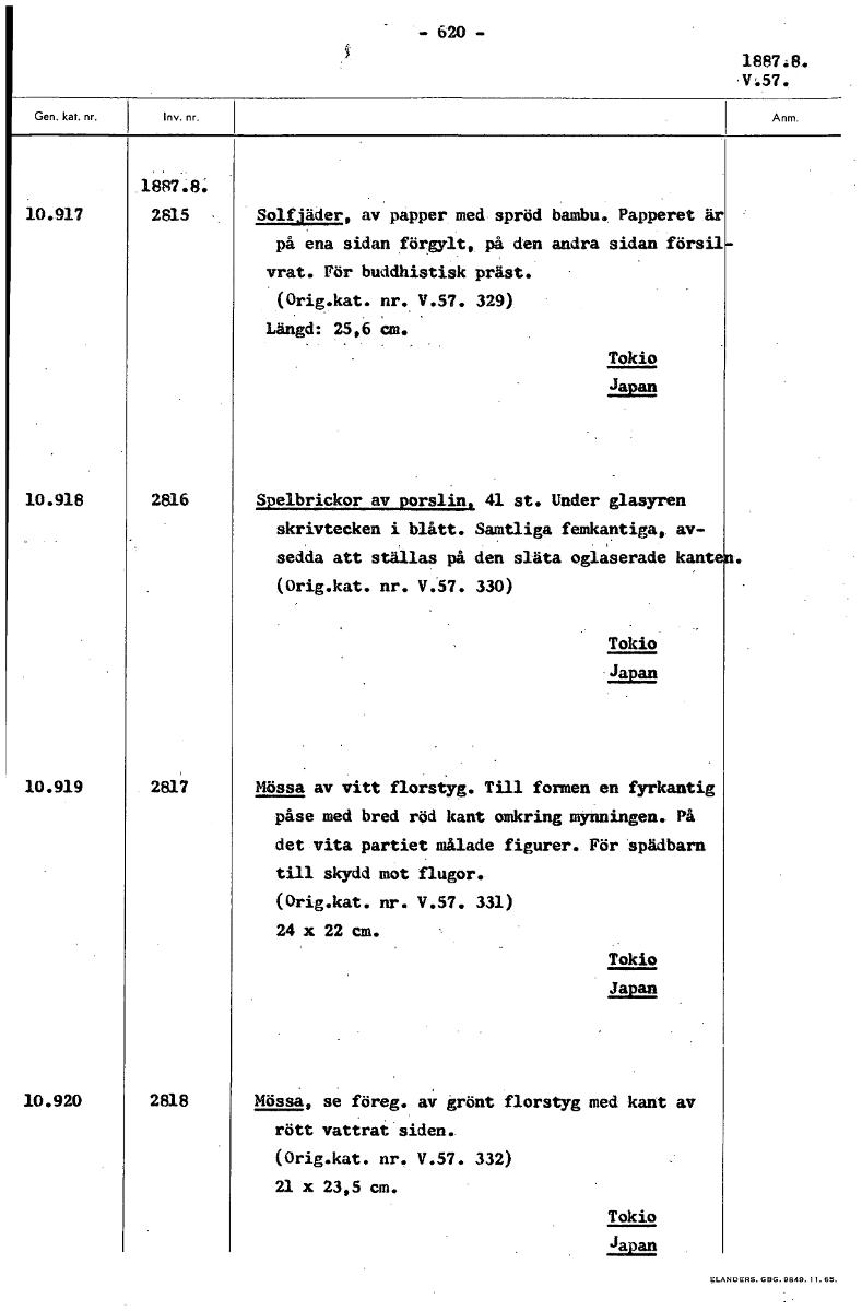 • - 620 - 1887.8. 10.917 2815 Solfjäder, av papper med spröd bambu. Papperet är på ena sidan förgylt, på den andra sidan försil yrat. För buddhistisk präst. (Orig.kat. nr. V.57. 329) Längd: 25,6 cm. Tok... Visa hela