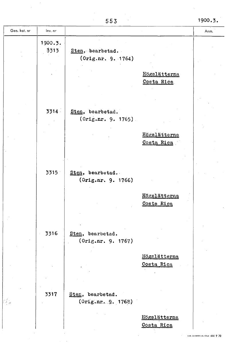 • 553 1900.5. 1900.3. 5313 Sten,-bearbetad. (Orig.nr..9..1764) Högslätterna Costa Rida. 3314 Sten.,. bearbetad. (.Orig.nr. 9. 1765), äässlätterna Costa Rica 3315' Sten, bearbetad.• (Orig.nr. 9. 1766) Hö... Visa hela