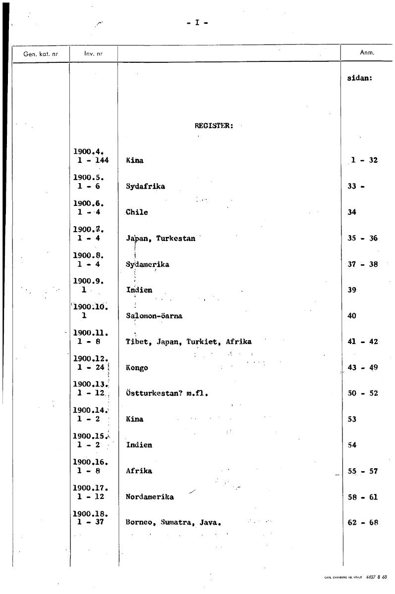 • sidan: REGISTER: 1900.4. 1 - 144 Kina 32 1900.5. 1 - 6 Sydafrika 33 - 1900.6. 1 --4 .Chile 34 1900.7. 1 - 4 J4an, Turkestan 35 - 36 1900.8. 1 - 4 Sydamerika 37 38 1900.9. 1 Indien 39 `1900.10. 1 Salom... Visa hela