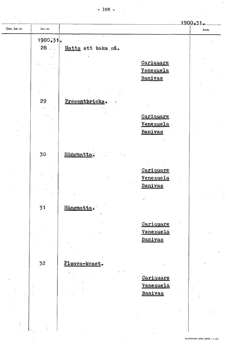 • 108 1900:+31" Matta att baka påå, Cariquare Venezuela Banivas 29 Presentbricka.. Cariquare Venezuela Banivas 30 Häråtta Cariquare Venezuela Banivas 31 Hänmatta. Cariquare Venezuela Banivas 32 219ava—k... Visa hela