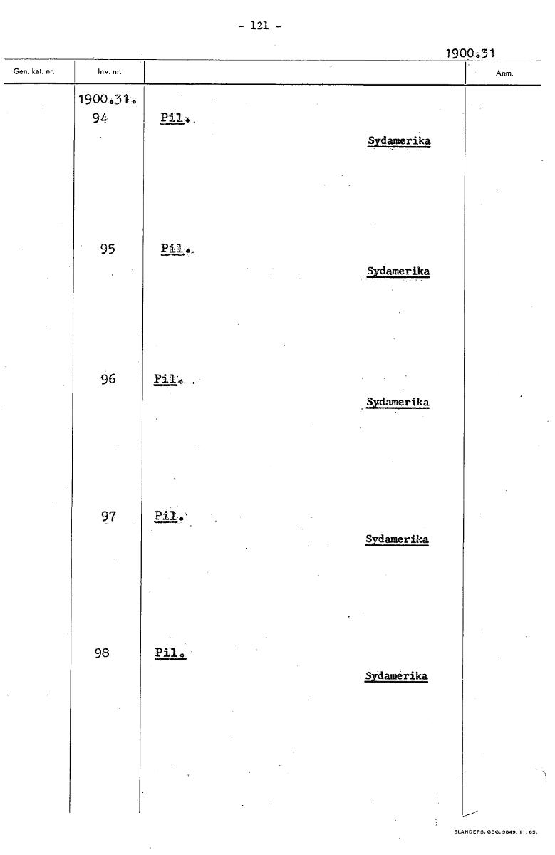 • -121- 190p,31 1900.31. 94 Pil. Sydamerika 95 Sydamerika 96 Pil Sydamerika 97 Sydamerika 98 Pil Sydamerika [ocr]