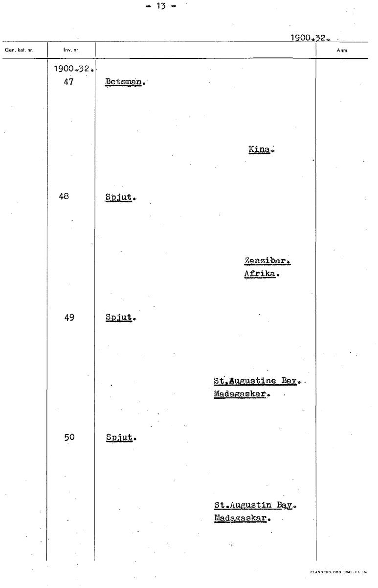 • 3 1900.32. 1900.-32. 47 Betsmano 48 Spjut. Zanzibar. Afrika. 49 klut St.augustine Bay. 50 Spjut. khAagustin BaZ. Madagaskar. [ocr]