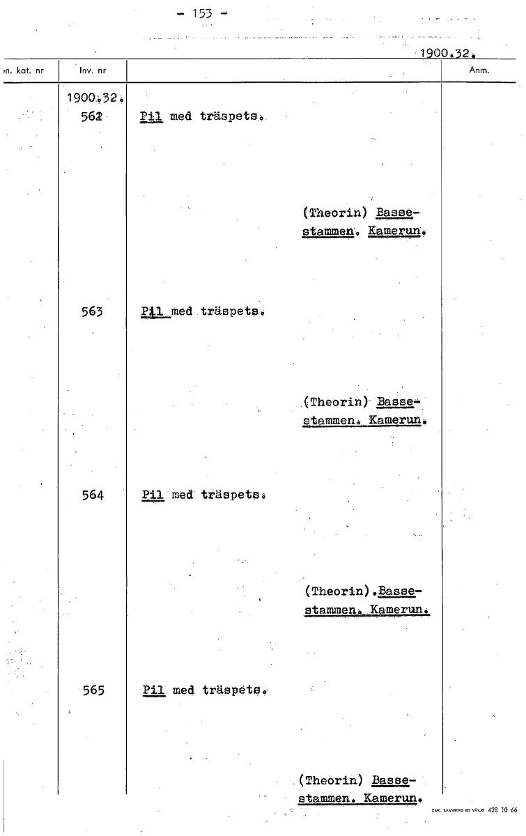 • 153 .1900.32. 1900:032. 562 Pil med träspets. (Theorin) Basse- stammen'. Kamerun. 563 pilmed träspeteb (Theorin) Basse stammen. Kamerun. 564 Pil med träspetsi, (Theorin) .Basse- stammen. Kamerun. 565 ... Visa hela