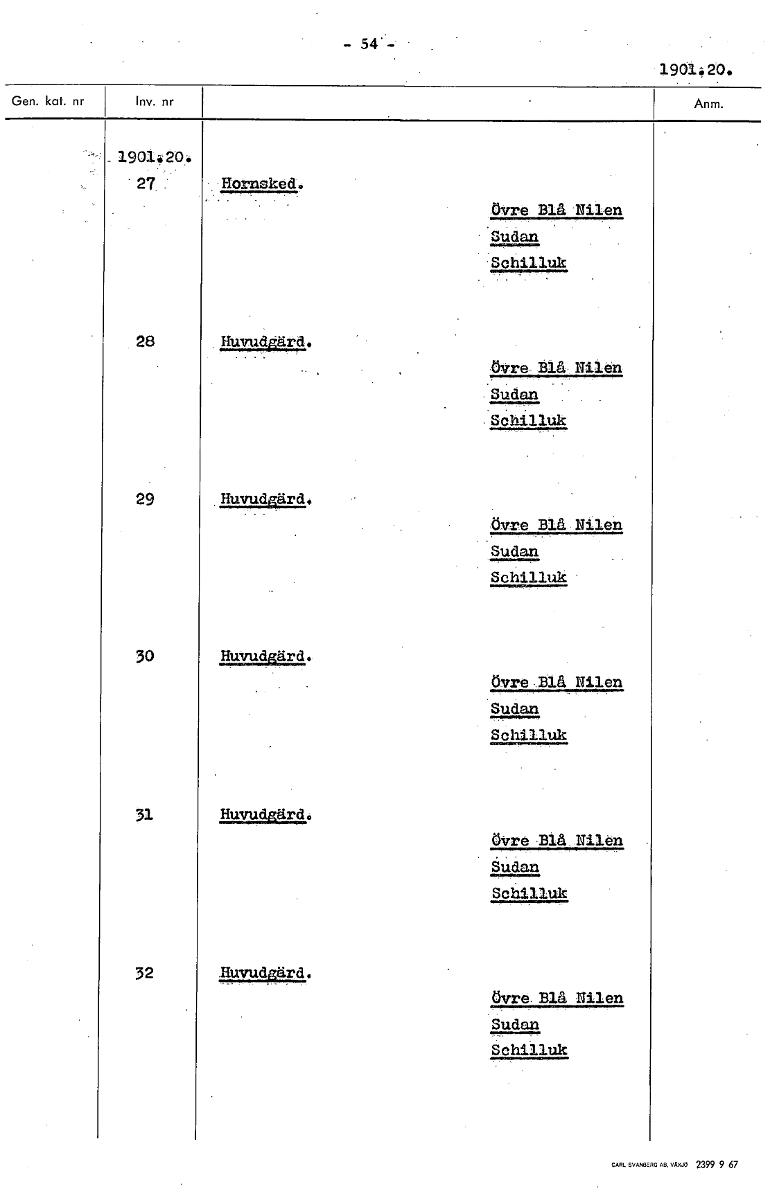 • -54*- 1901.20. _ 1901.20. 27 : Hornsked. Övre Blå Nilen Sudan Schilluk 28 Huvudgärd. Övre- Blå Nilen Sudan Schilluk 29 Huvudgärd. Övre Blå Nilen Sudan Schilluk 30 Huvudgärd. övreBlå Nilen Sudan Schill... Visa hela