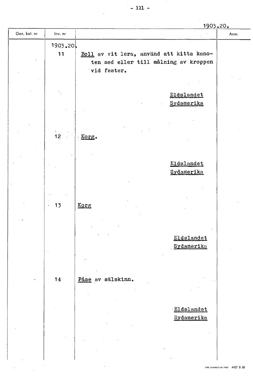 • Boksida ur Etnografiska museets generalkatalog.