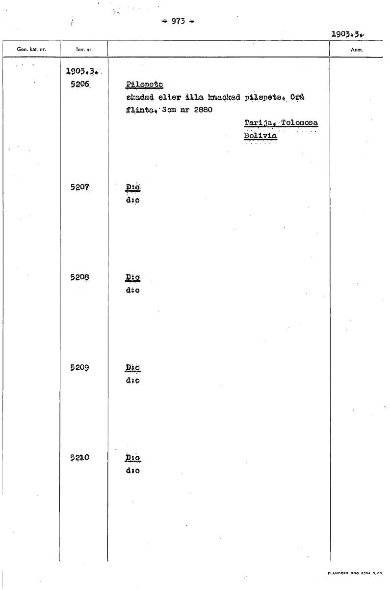 • 973 1903:3,, 5206, skadad eller illa knagao glopetoi tara flintak'Som nr 2880 yarilej Tolomosa Bolivia 5207. 5208 5209 4;f2) 5210 d:o [ocr]