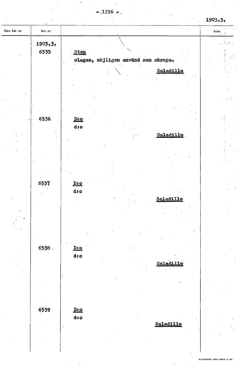 • 1905.34 1903+.31. 8535 Sten oUgent, möjligen använd 'som akrAPP.4 Saladillo 6536, d:o .6537 6538 D:o d:o Saladillo 6539 D:o d:o SaiadillO [ocr]