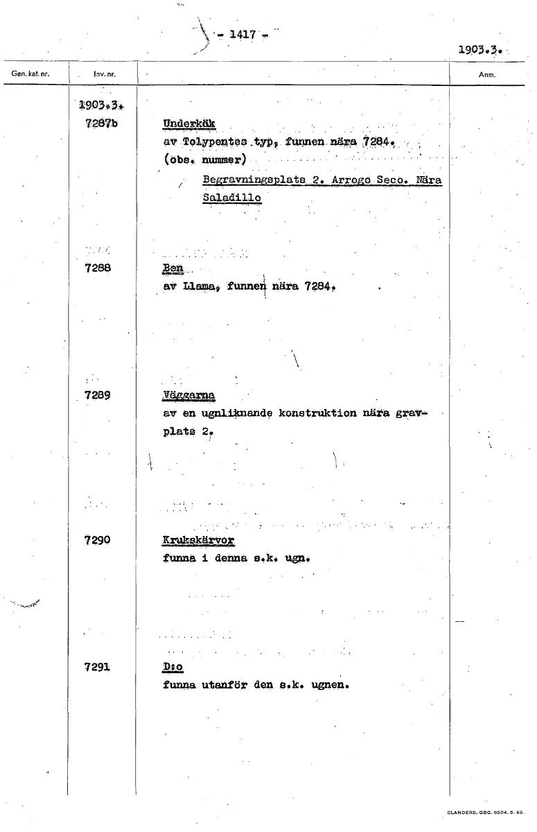 • 1417't, - .199,31J4, 7?87b dokik av Tolypentes,typp fu.lrglen. nära 7284. (Obs nummer Saladillo 7288 av LlaTa, funne4 nåra 7284. 7289 YäKgarna av en ugnliknande konstruktion näta grav., Plats 2! 7290 ... Visa hela