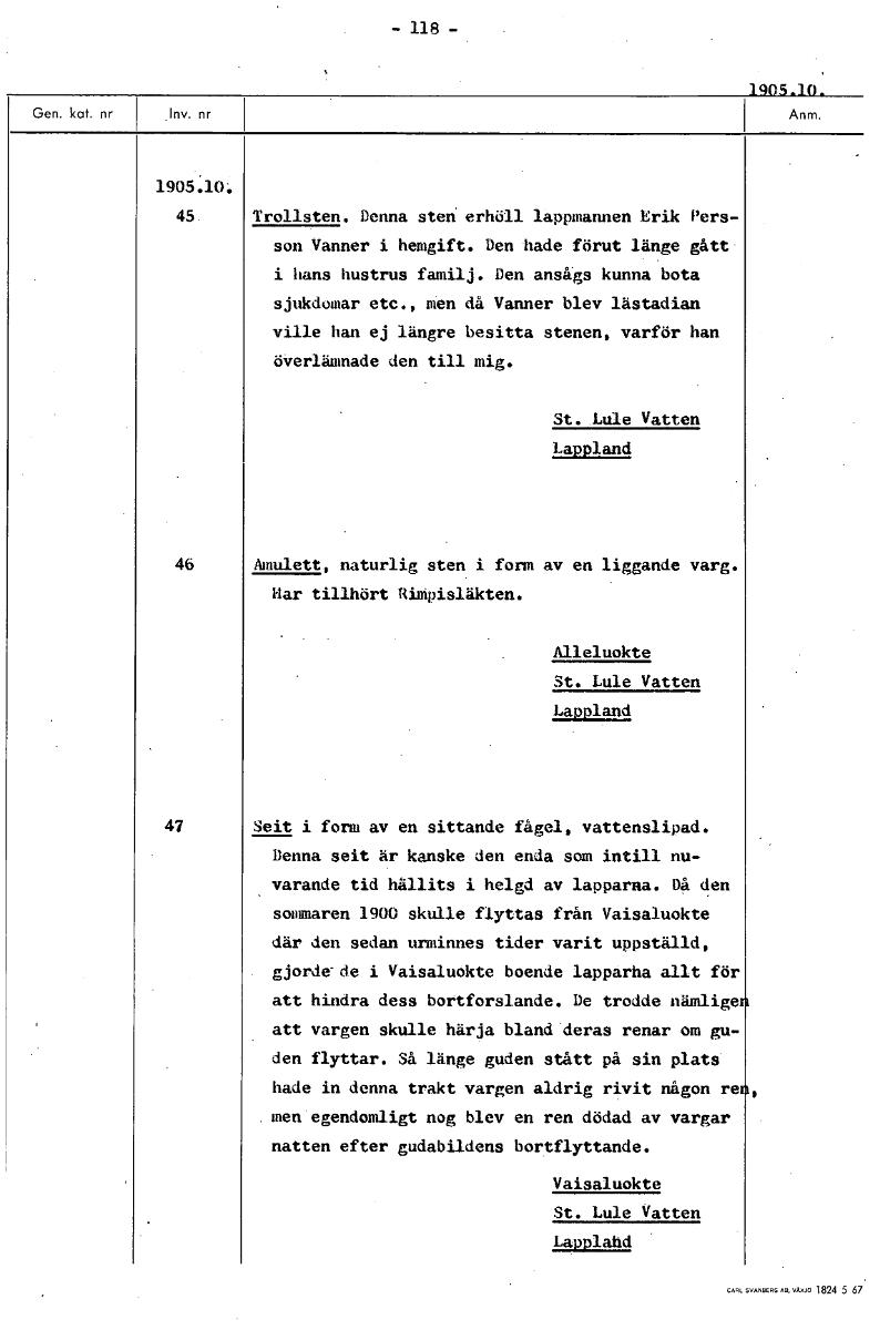 • Boksida ur Etnografiska museets generalkatalog.
