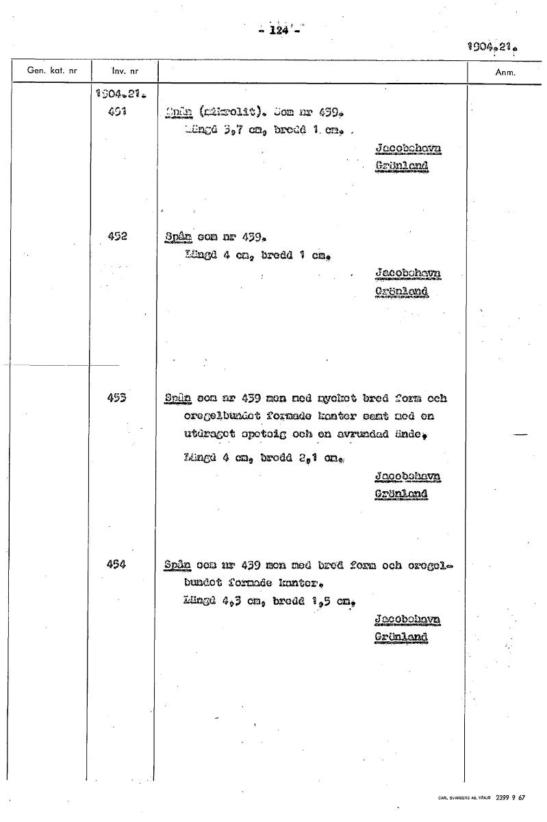124'-- 19 4921a 2:.204,21, 491 2ni'm 42011t). ;01r. ur 439, 37 cri bod 1. Jacobohn'tta • 452 9292, oun nr 4399 IfIned 4 cn9 bredd 1 cno Jekobuhestrn 453 Pinan oca nr 439 nen nod wchot bxod och orecelbtudct formade kanter cent zaod utdracot och on avrundad anda, LtIngd 4 em9 brodd 2,1 maj 454 ocz ur 439 non nod bred ?o och oltwjoicR. bundot formade 1zontcr0 luta(4.a 493 crit bredd 195 Jacobohavn [ocr]