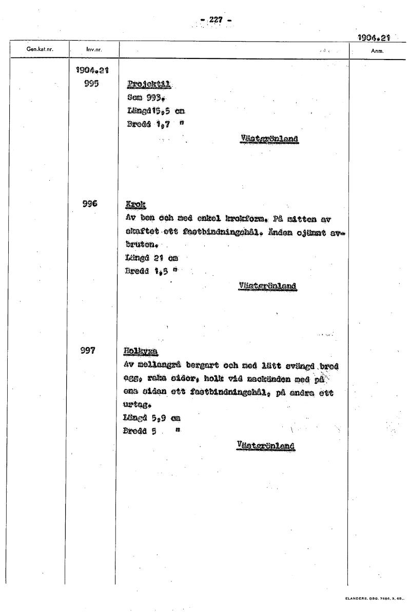 • Boksida ur Etnografiska museets generalkatalog.