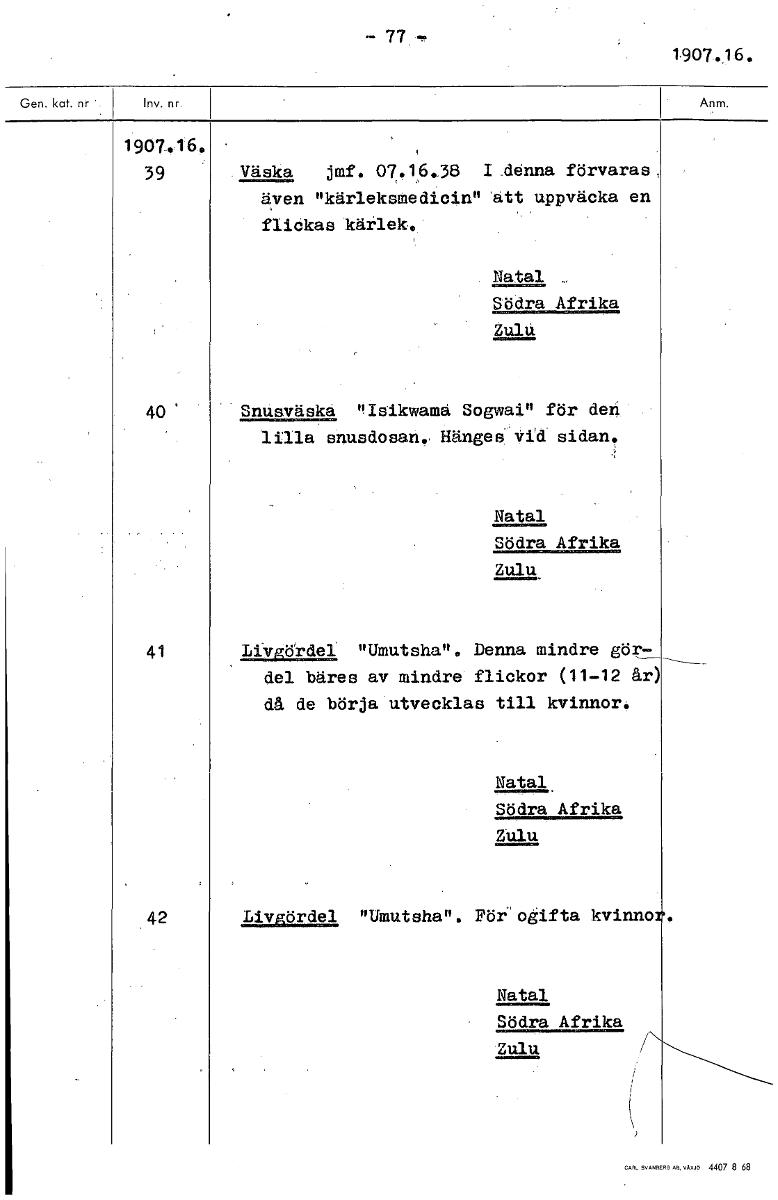 • Boksida ur Etnografiska museets generalkatalog.
