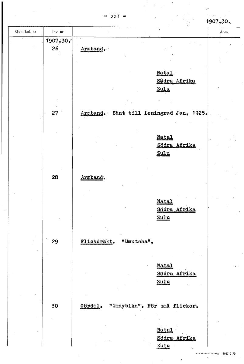 • - _ 1907.30, 1907.30.. 26 Armband Natal Södra Afrika Zulu 27 ArMband.- Sänt till Leningrad Jan. 1925. Natal Södra Afrika Zulu 28 Armband. Natal Södra Afrika Zulu 29 Flickdräkt. "Ututshai,:, Natal Södr... Visa hela