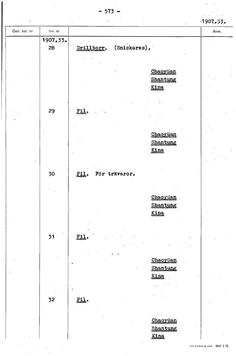 • - 573 - 1907.33. 1907.: 35. 28 Drillborr. (Snickares). Chaoviian Shantung Kina 29 Fil. Ohaoy Lian Shantung Kina 30 Fil . För trävaror. C ha caritan Shantung Kina 31 C haoyilan Shantung Kina 32 Fil. C ... Visa hela