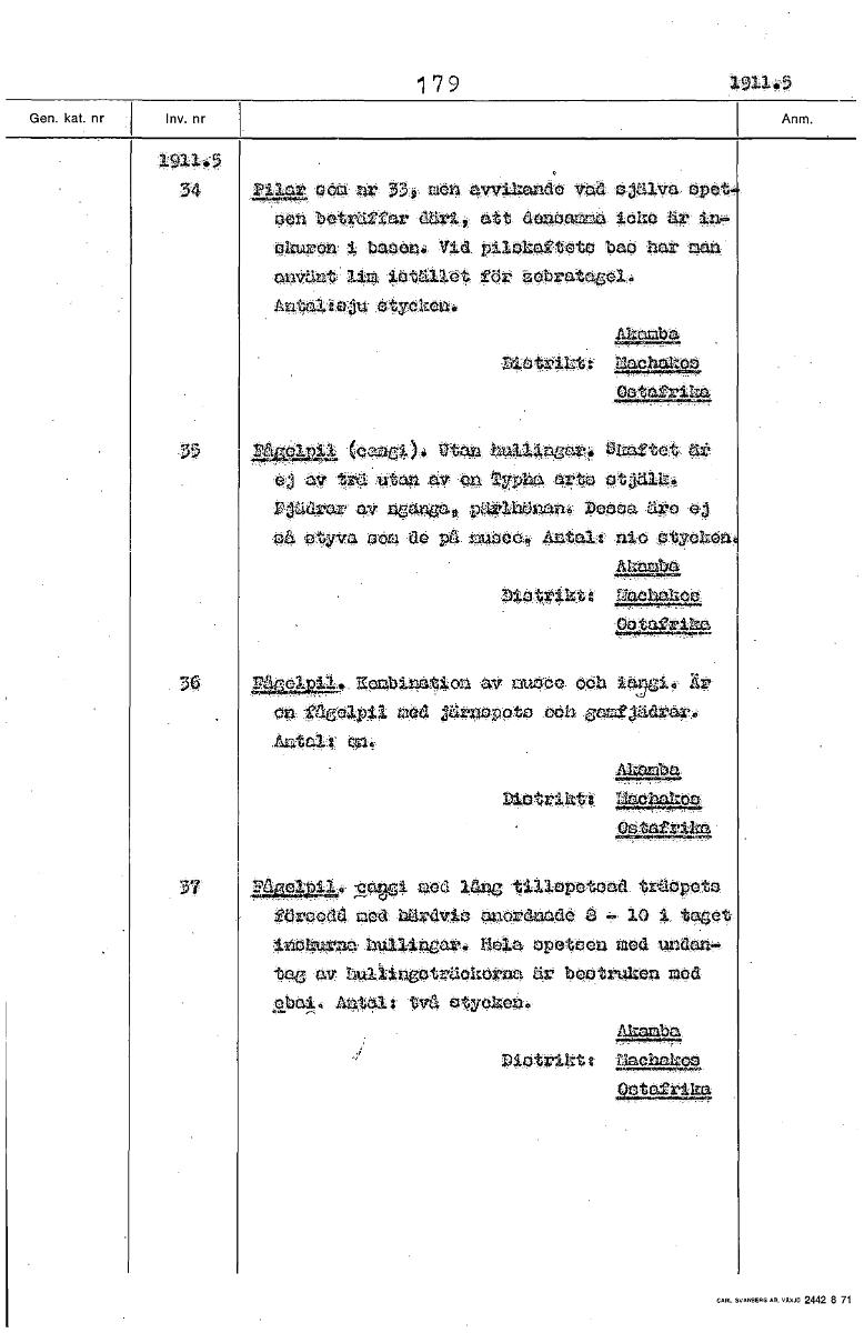 179 1913. 1911, 54 non avvikande Vad ejalvae e pen beträffar däri, att donen= lake ät- ekuten 1 baden. Vid pilokaftete bee hat man anVänt lin iotället för tabratagel. Antalitaju n'tyekeni, Akamba Di0tritt: naehakoo Ontafri- 39 eltiI Ceangi Utan hu1li-f7 Skaftet 4t.t. ej av tka utan av en Typha artd ptjälk6 Flädrar av AganSaD lArlhönnno Deppa äro Oj 04 PtYva 00m do p4 MU0000 Antal: 11-10 IltYckön Akamba rikt: !,Jehak Oetafrika 36 ne E0mUr":i00 av muoco 00h 101 1.4. At en •ftacelpil uod järpepoto oah-gamt3ädtar9 AntP1f Pn, Di 37 Yä7c/bil.-9,._04 und låno tillopetead traopeta föreedd med hardvie anordnade 10 tinct 4.5.9-bkurna bul1g.near* Mola 0Potoon mod undan .6. tag-av hullingeträPkorma iir 1300trUkom mod ebai. Antalt två otyckoå. Akanba Diotrikt: Lbehakoa 9094.11-194 [ocr]