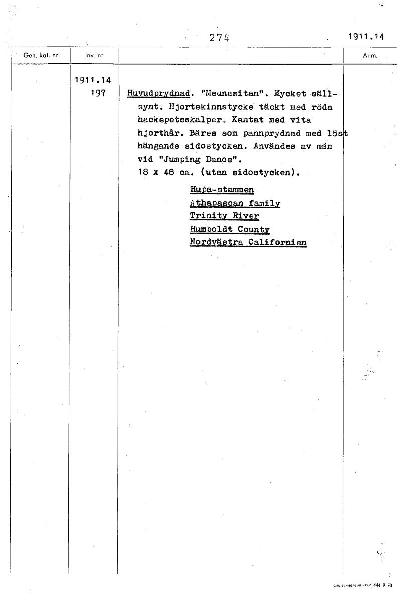 • Boksida ur Etnografiska museets generalkatalog.