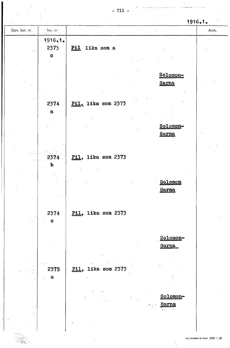 • 1916.1. • 2373 Pil lika som a 0 Solomon- öarna 2374 lika som 2373 a Soloition öarna 2374 Pil, lika som 2373 b Solomon öarna 2374 lika, som 2373 e Soloinoni- öarna 2375 Pil, lika, som 2373 a Solomon- g... Visa hela