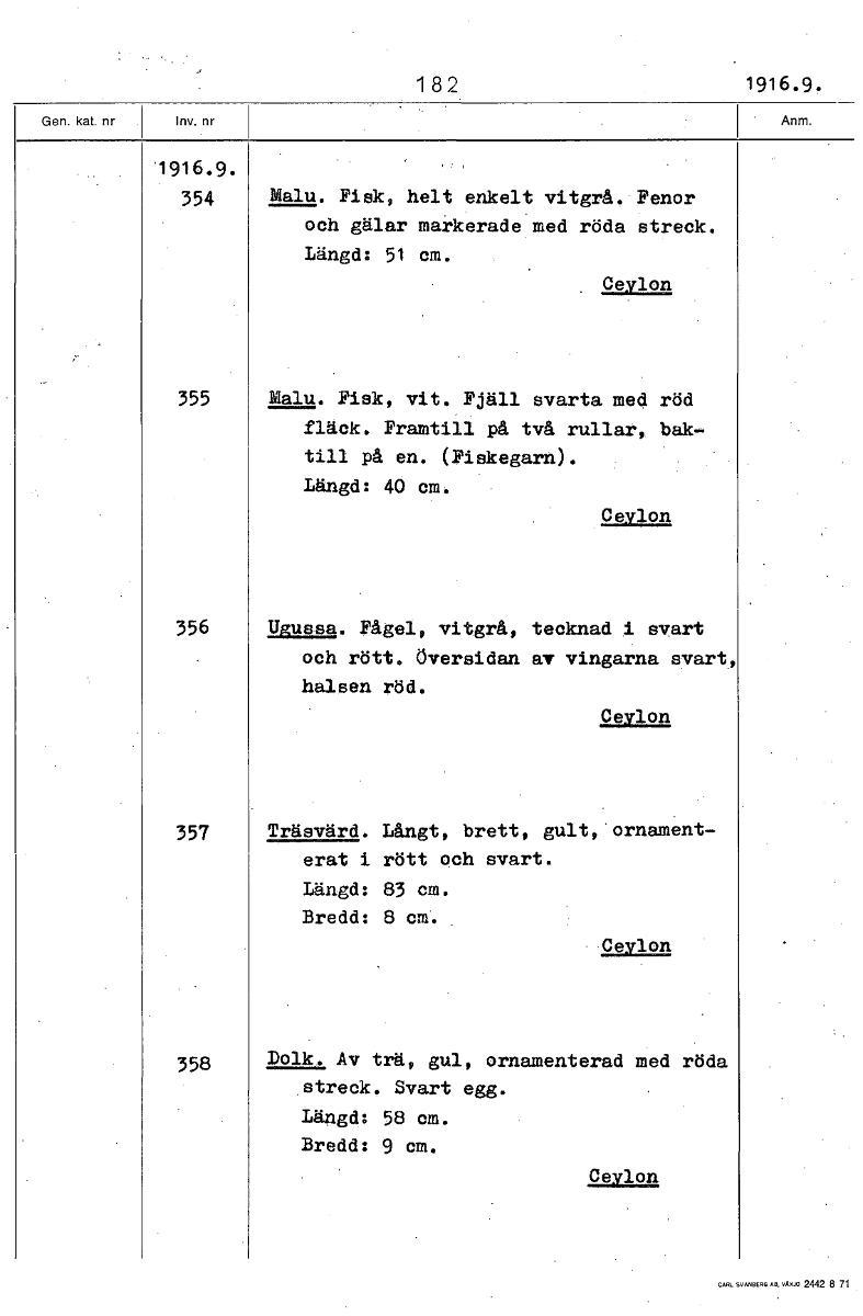 • Boksida ur Etnografiska museets generalkatalog.