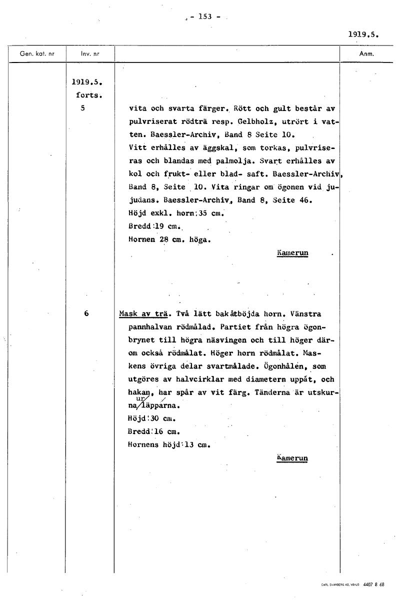 • -153 - 1919.5. 1919.5. forts. 5 vita och svarta färger. Rött och gult består av pulvriserat rödträ resp. Gelbholz, utrört i vat- ten. Baessler-Archiv, Band 8 Seite 10. Vitt erhålles av äggskal, som to... Visa hela