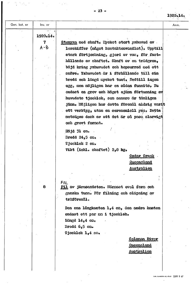 • - 1920.14.f. 1920414. 7 Stenyxa mod °käft. myökot stort y2bOud av A -e) lorokiffer (något kontaktomvandlat)4 Upptill °tork förtjeekning, gjord av van, för fast- hållande av okaftet, Skatt av en trädgr... Visa hela