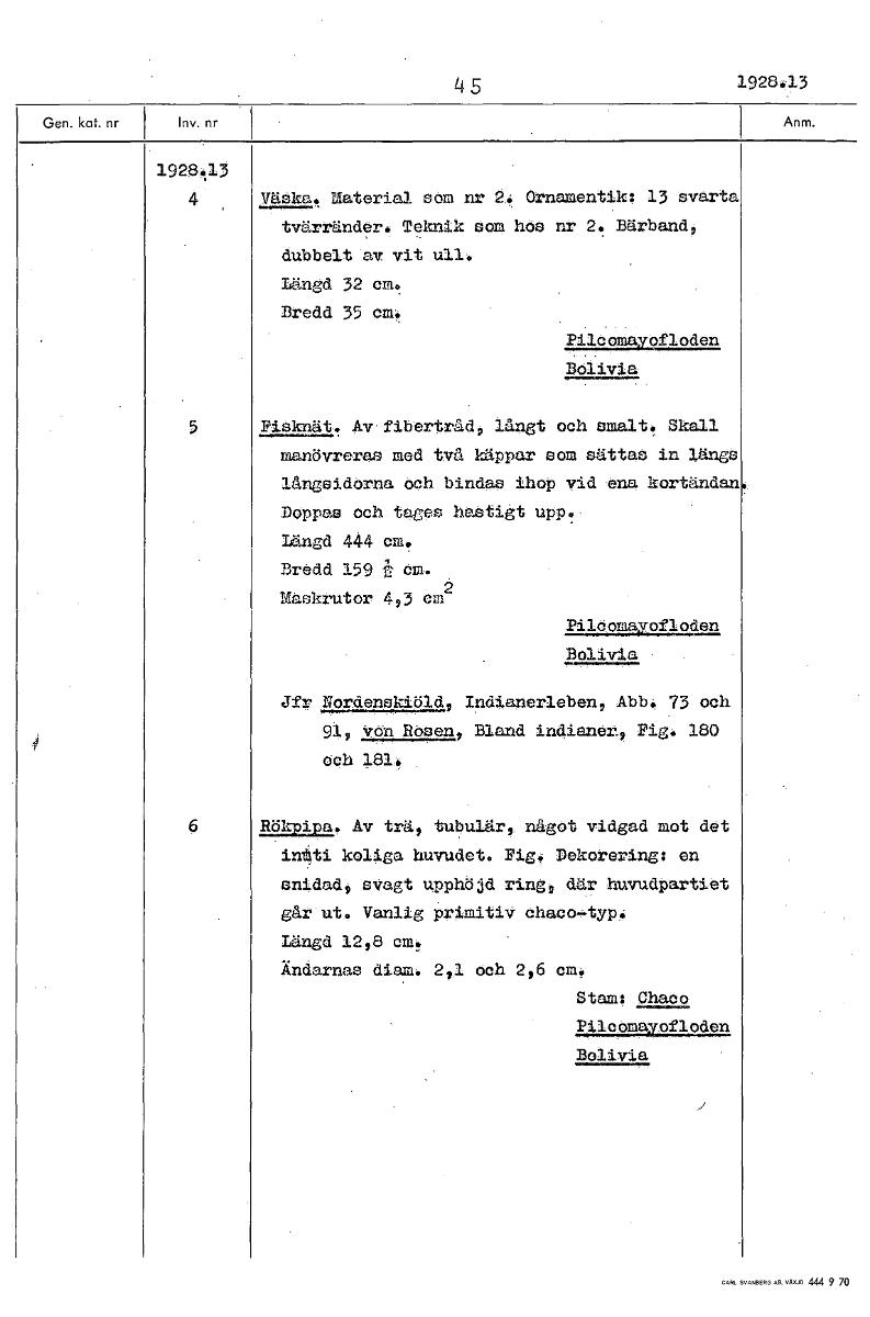 • Boksida ur Etnografiska museets generalkatalog.