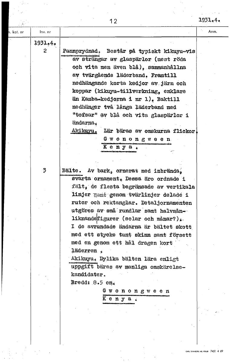 • Boksida ur Etnografiska museets generalkatalog.