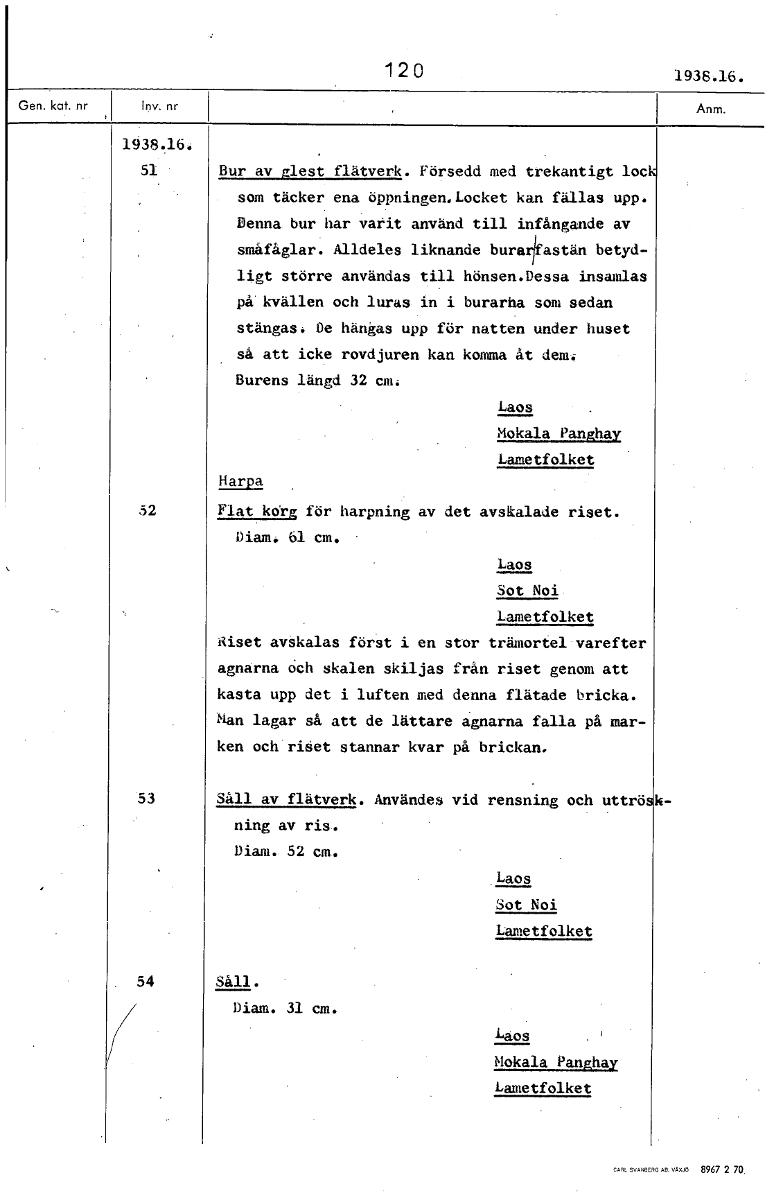 • Boksida ur Etnografiska museets generalkatalog.
