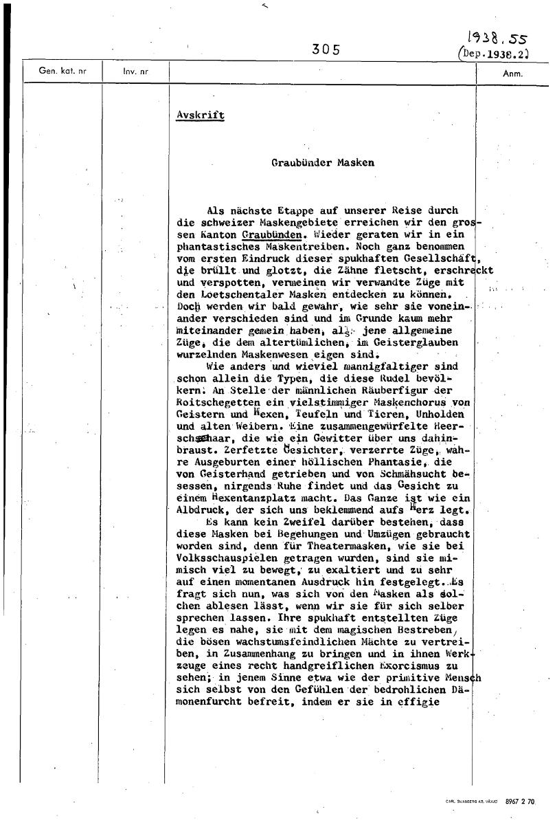 13 , 305 Avskrift Graubunder Masken Als nächste Etappe auf unserer Reise durch die schweizer Maskengebiete erreichen wir den gro sen Kanton Graubönden. Wieder geraten wir in ein phantastisches Maskent...